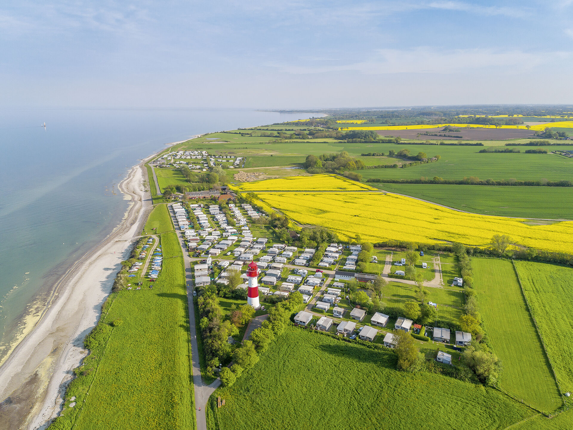 Unser Campingplatz mit 150 Plätzen liegt auf großflächigem Gelände direkt hinter dem Deich am Ostseestrand.