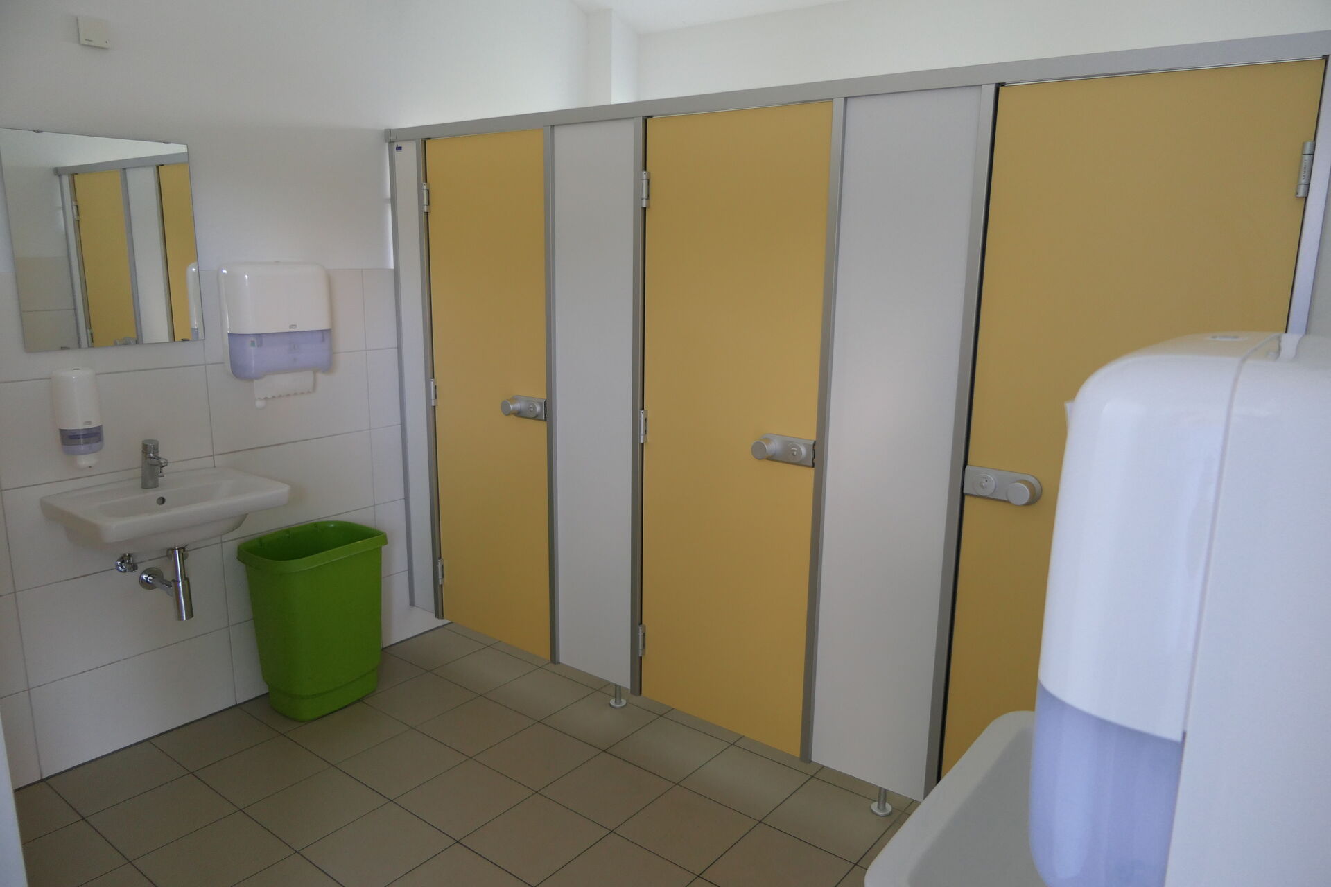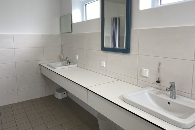 - Damen- und Herrenwaschraum mit je Kaltwasser- , Warmwasserbecken und Einzel-Waschkabinen sowie ein abgetrennter Raum mit zwei Duschen