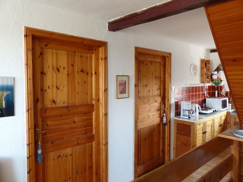 Zwei Doppelzimmer im Erdgeschoss, zwei Doppel -und ein Einzelzimmer im ersten Stock und das Dachzimmer mit drei Betten bieten Ihnen einen Rückzugsort im gemeinschaftlich genutzten Haus.